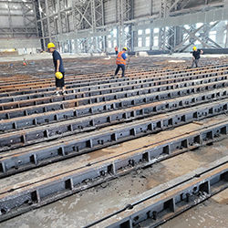鑄鐵地軌的固定方法,在軌道的內側兩邊,按要求間距(約500-700mm)用...